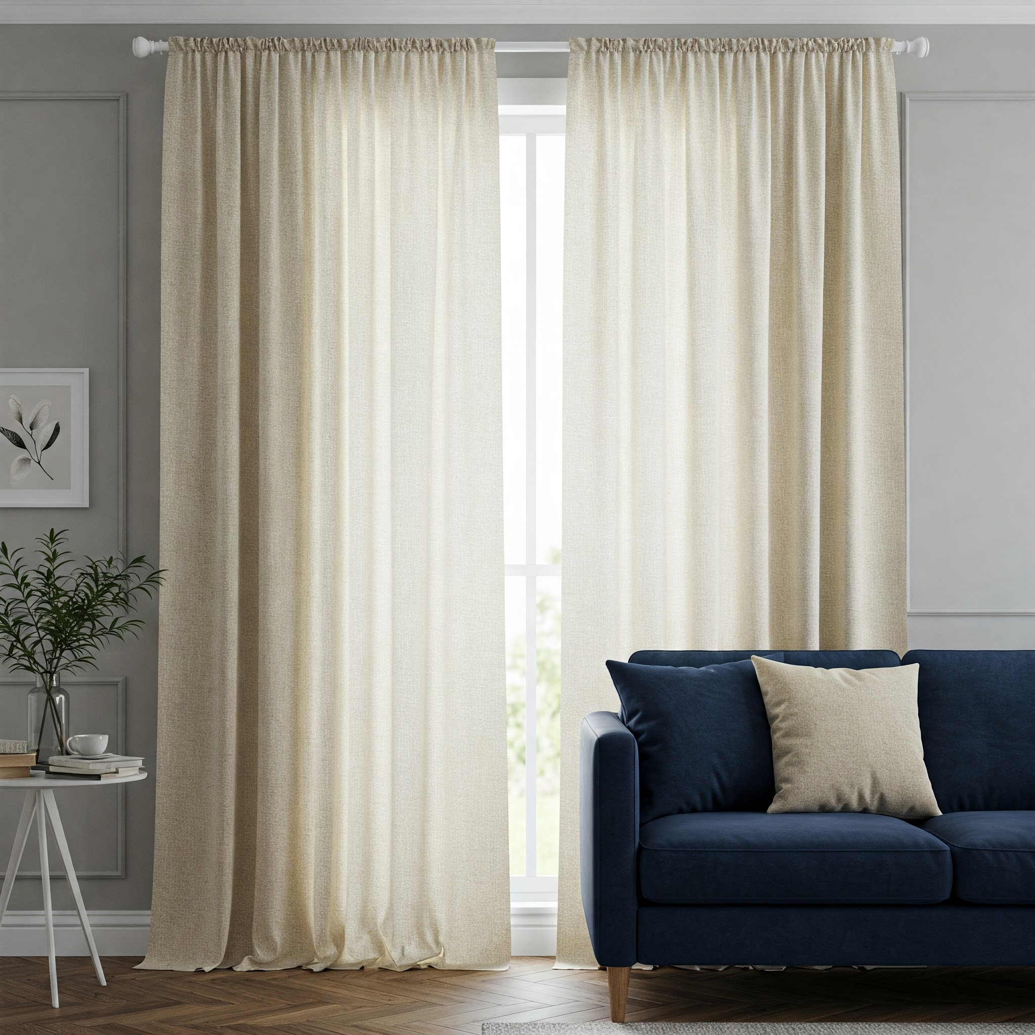 کتان و لینن: این جنسها مناسب فضاهایی با سبکهای مینیمالیستی و راحت هستند. با مبل سرمهای، پردههای کتان سفید یا کرم، فضای آرامشبخشی ایجاد میکنند.