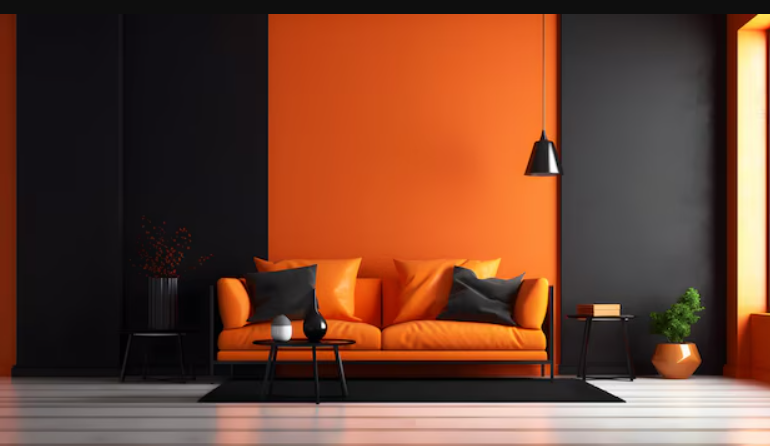 - مشکی: مشکی در کنار نارنجی، کنتراست بسیار بالایی ایجاد میکند و باعث میشود نارنجی به شدت برجسته و پویا به نظر برسد. این ترکیب جسورانه و مدرن است و برای فضاهای خاص یا با سبک صنعتی مناسب است.